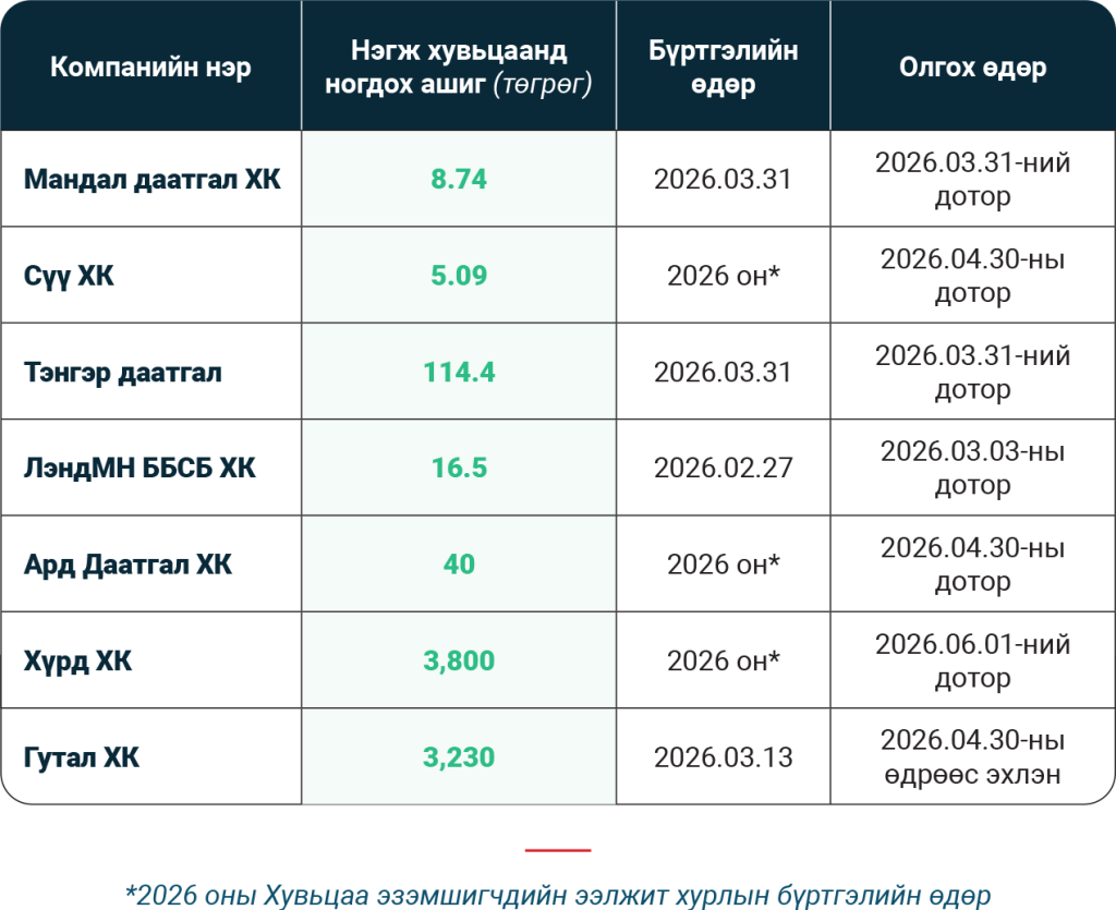 Эх сурвалж: Монголын Хөрөнгийн Бирж